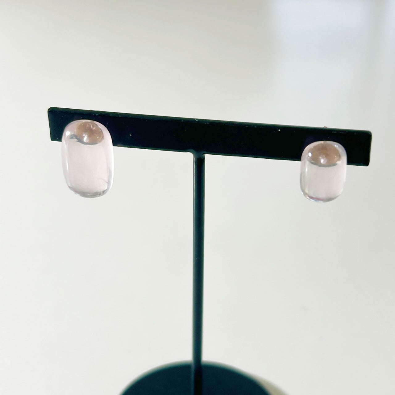 ローズクォーツピアスは、自然の力を感じる出来るだけ人の手の加工が入っていない石を使用しています。