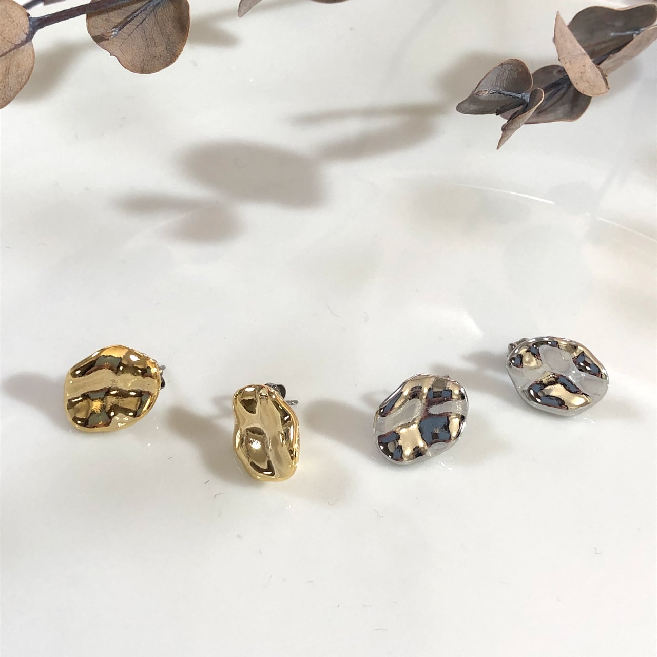 素材:合金・チタン(ポスト/キャッチ)+ゴールド色、シルバー色コーティング