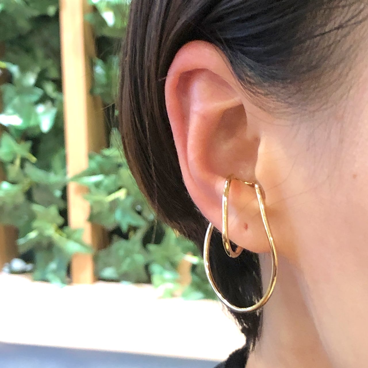着けた時に線の湾曲デザインがきれいにみえるように、耳にフィットして着けやすいように緻密に計算されたイヤーカフ。