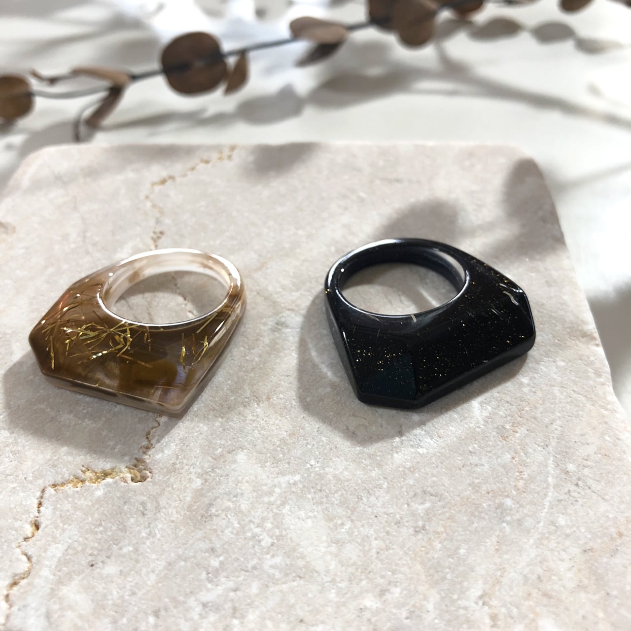 流星群のようなアクリル板を作り、おしゃれなリングにしました。