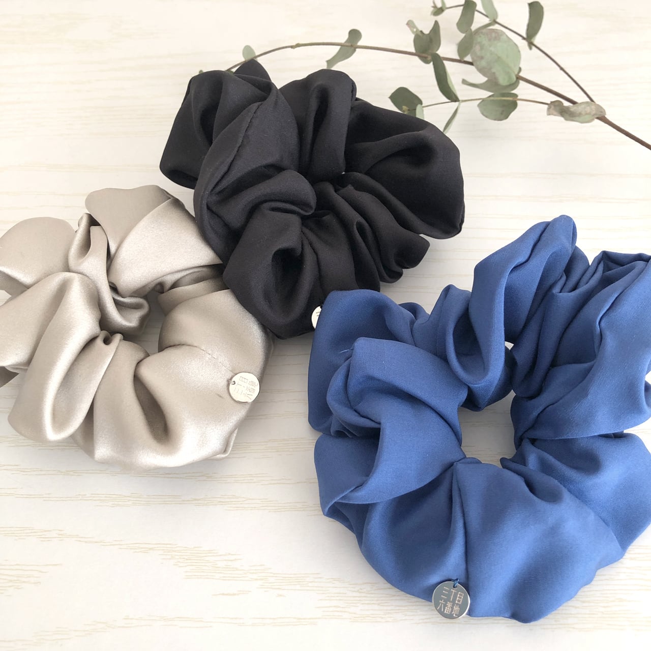 Silk 100% の上品な光沢の大人のシュシュ。