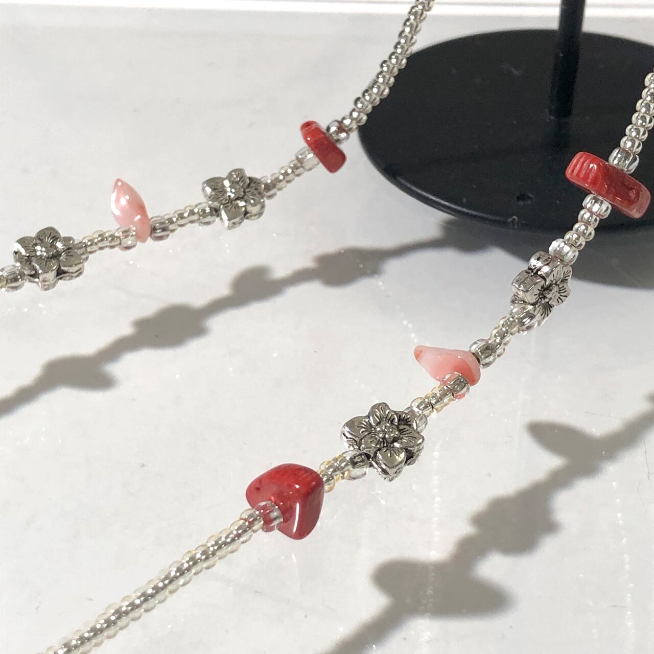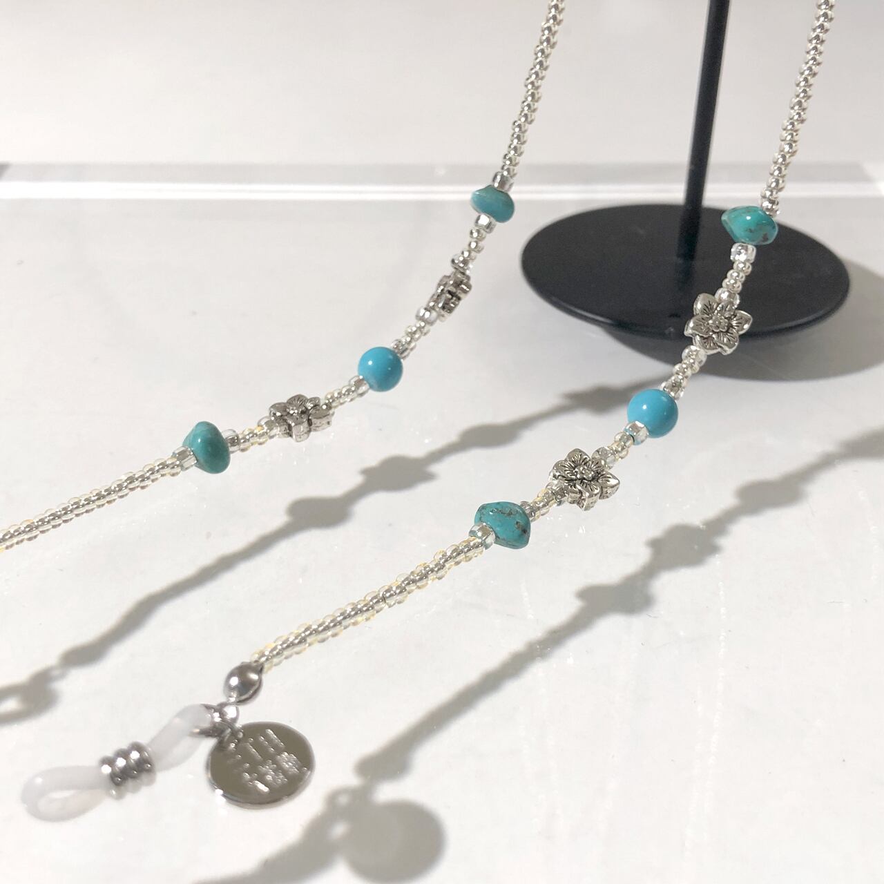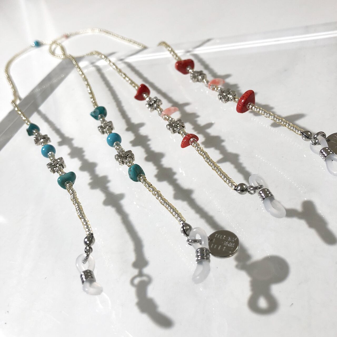 素材:ガラスビーズ・ターコイズ・サンゴ・合金・真鍮・シリコン